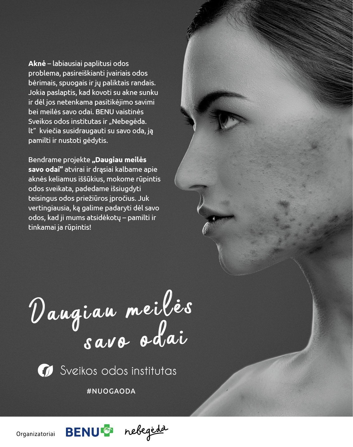 Kviečiame prisijungti prie mūsų ir BENU vaistinės sveikos odos instituto projekto „Daugiau meilės savo odai“: dalinkitės savo istorijomis instagrame apie tai, kaip pamilote savo odą ir savo nuogos odos nuotrauka su grotažyme #nuogaoda, taginkite @nebegeda ir @benu_vaistine, o labiausiai mus palietusių istorijų autorius apdovanosime BENU vaistinės ir Bioderma Lietuva paruoštu odos priežiūros priemonių rinkiniu.