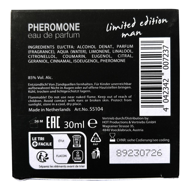 Unikalus ir aštrus rytietiškas kvapas atveria duris į nepažintą, viliojantį pasaulį, kuriame dominuoja elegancija ir gundymas. Feromonai ne tik padidina patrauklumą, bet ir sukuria stiprią erotinę aurą aplink Jus. Šis kvapas yra puikus pasirinkimas vyrams, kurie nori išreikšti savo asmenybę ir gyvenimo būdą per aromatą.Naudojimas: rekomenduojama purkšti pulsuojančias vietas: už ausų, kaklą, riešus.Stilingas stiklinis buteliukas, kuris puikiai tinkamas dovanai.Viršutinės natos: bergamotė, rožiniai pipirai, galbanas, žaliosios citrinos.