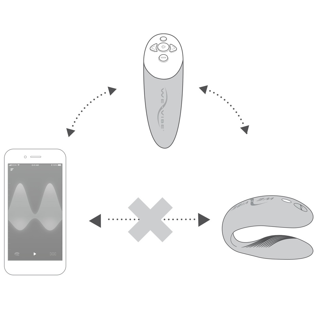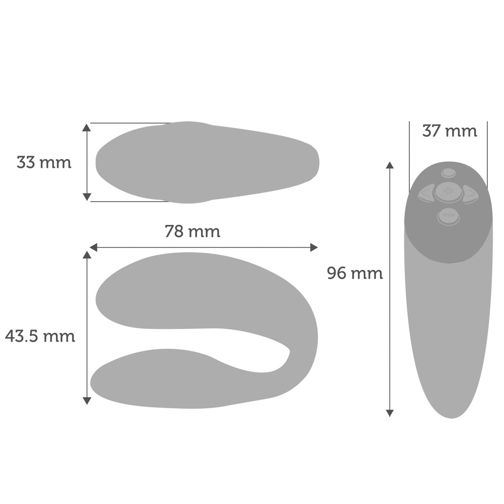 Vibratorių taip pat galima valdyti nuotolinio valdymo pulteliu, kuris pridėtas prie rinkinio. Pultelis yra jautrus prisilietimui: vietoj to, kad spaudyti mygtukus ir ieškoti tinkamiausio intensyvumo, jums tereiks spustelti patį pultelį taip stipriai, kaip norite, kad vibruotų jūsų žaisliukas. Pultelis reaguos į jūsų prisilietimų stiprumą ir pagal tai reguliuos vibracijos intensyvumą. Taip pat šį vibratorių galima valdyti ant jo esančiu mygtuku, bei rinktis iš įdiegtų 10 režimų bei 10 greičių.
