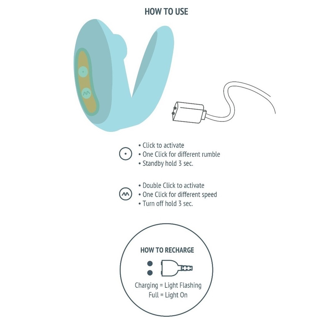 Pagamintas iš aukštos kokybės silikono, kuris yra saugus ir malonus kūnui, nekaupia kvapų ir greitai prisitaiko prie kūno temperatūros. Įkraunamas USB jungtimi, atsparus vandeniui, todėl žaidimus galėsite perkelti ir į dušą ar vonią.