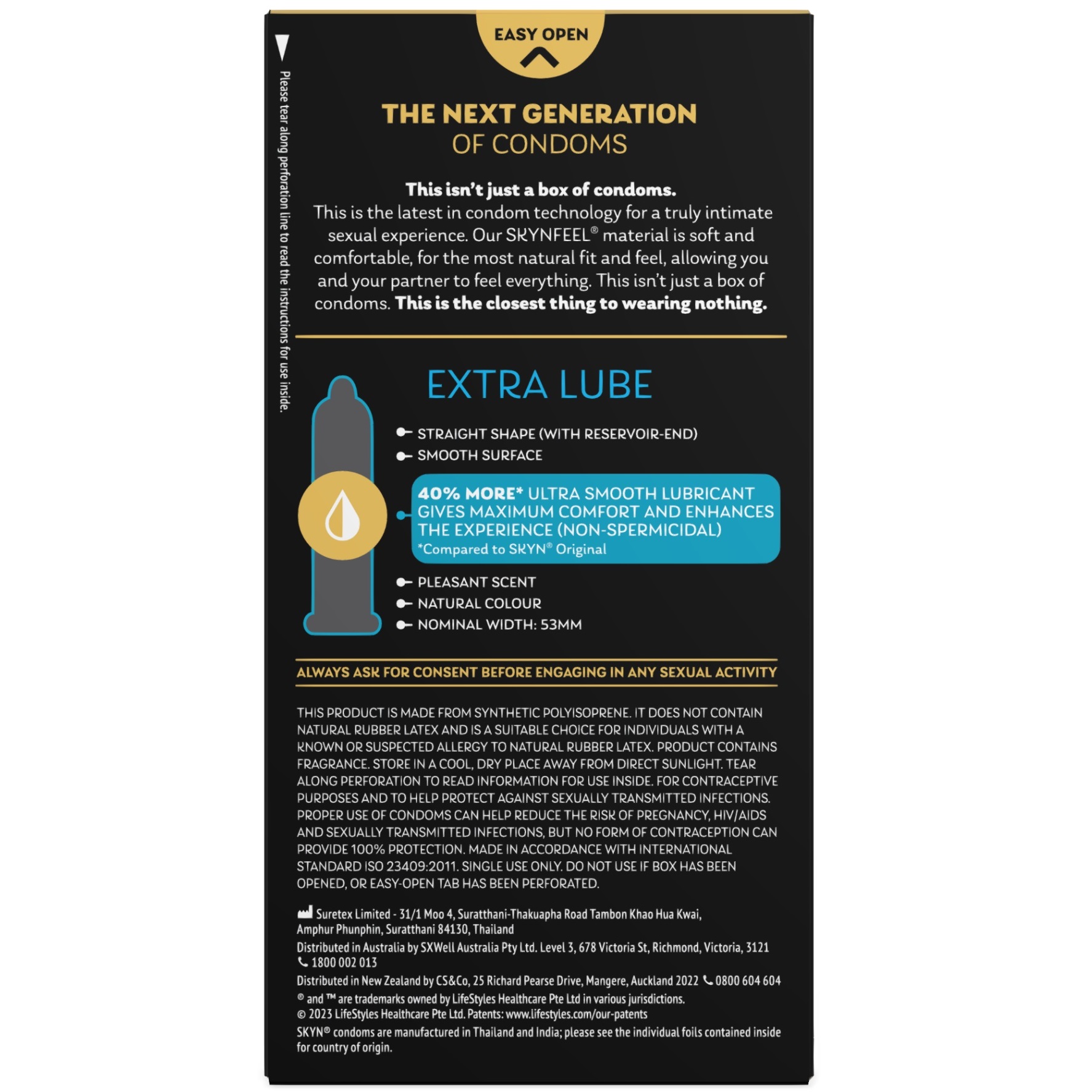 Toks jausmas, lyg nedėvėtum nieko. SKYN „Extra Lube” prezervatyvai yra pagaminti iš plono ir tvirto poliizopreno, tad mylintis pojūčiai išlieka itin natūralūs.