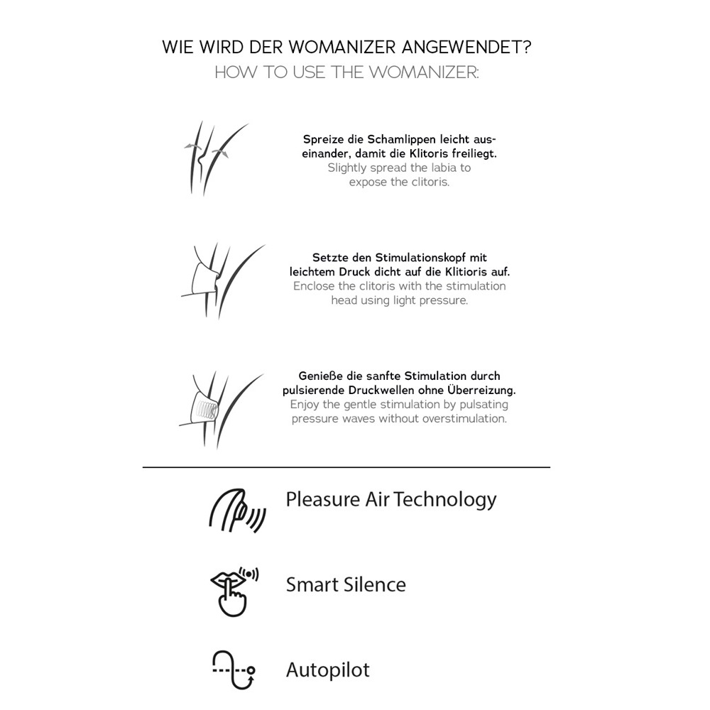 Tas jausmas, kai žodis „gera“ įgauna tūkstantį naujų prasmių… Su šiuolaikišku ir inovatyviu klitorio stimuliatoriumi „Womanizer Premium“ patirsite tai, apie ką svajojote pačiose slapčiausiose savo fantazijose. Jau nuo pat pirmų prisilietimų pajusite malonų dilgčiojimą klitoryje, kuris palaipsniui augs tol, kol tiesiog sprogsite iš palaimos. Pleasure Air™ technologijos dėka prietaisas gali veikti ne tik mechaniniu būdu, bet ir be kontakto su klitoriu, švelnių pulsuojančių oro bangų pagalba. Stimuliatorius „Womanizer Premium 2“ turi net 14 skirtingų intensyvumo lygių, todėl žaisdamos su savimi galėsite juos reguliuoti ir kontroliuoti malonumą. Na, o norinčios visiškai atsipalaiduoti galės pasinaudoti automatiniu režimu, kuomet klitorio stimuliatorius pats atrinks intensyvumo lygius.