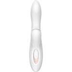Dvigubą stimuliaciją dovanojantis „Satisfyer Pro+ G-Spot“ yra fantastiškas pasirinkimas ieškantiems savo pirmojo vibratoriaus. Vienu metu stimuliuojamas ir G taškas, ir klitoris. Malonumą sukurs vibracijos (net 10 skirtingų režimų) ir kvapą gniaužiančios oro bangos. Vibratorius puikiai prisitaiko prie kūno linkių ir randa kelią į giliausią malonumą.