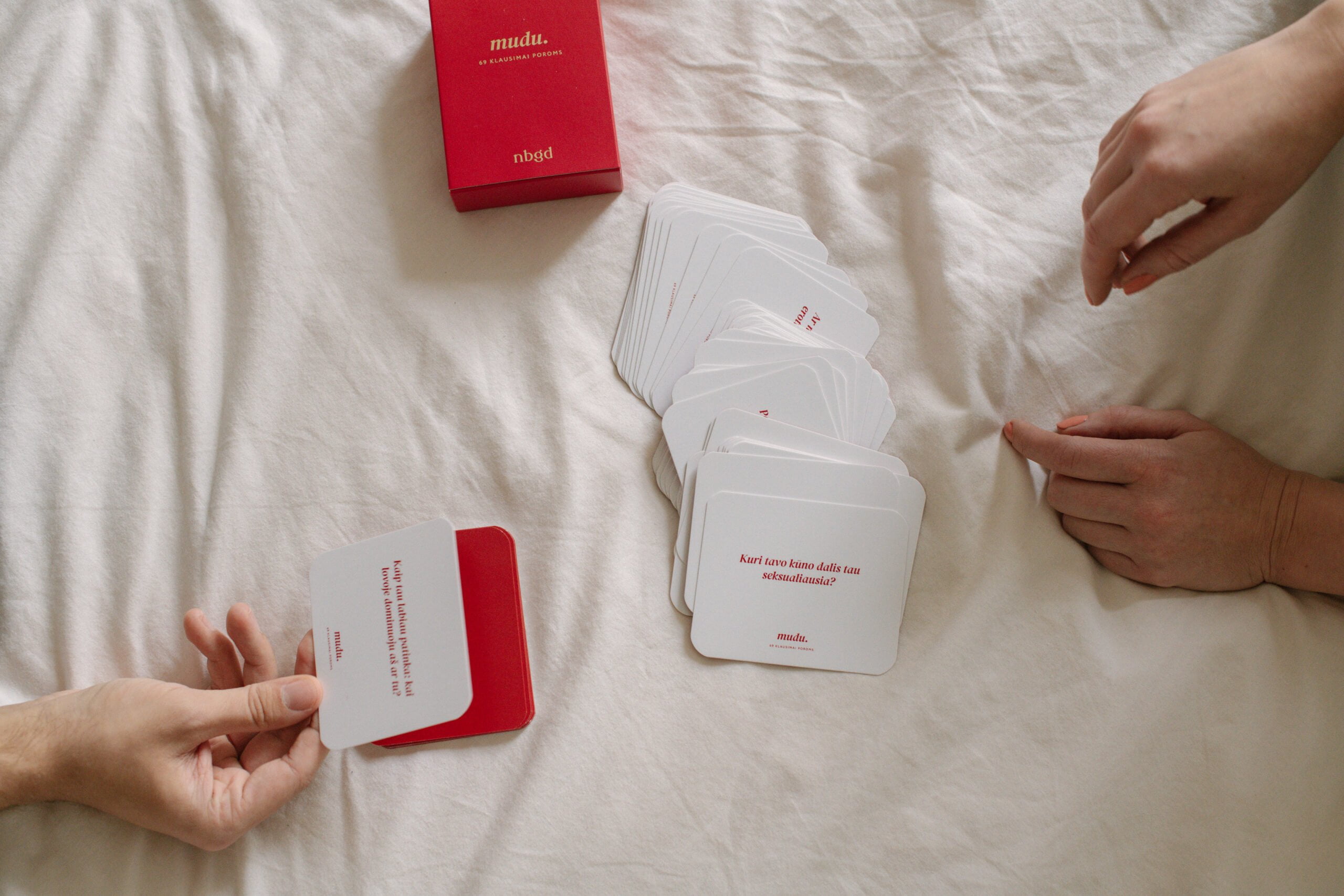 Jeigu nežinote, kaip pradėti šį iš pažiūros nelengvą pokalbį, darykite tai žaidimo forma. Būtent tam ir sukūrėme „Nebegėdos“ kortas „Mudu“ – jose rasite daugybę įvairių intymių klausimų, pradedant seksualinėmis fantazijomis, baigiant pokalbiais apie poreikius ir malonumą. Galima įsigyti tiek popierinį, tiek skaitmeninį kortų variantą – abu formatai padės užmegzti atvirą ir ir labai svarbų pokalbį.