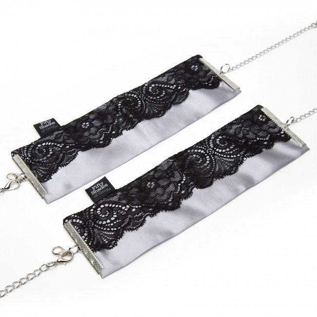 Elegantiški antrankiai „Play Nice“ puikiai tinka aistrą žadinantiems žaidimams. Pagaminti iš sidabrinės spalvos satino ir dekoruoti subtilia nėrinių juostele, jie atrodo tiek stilingai, tiek jausmingai.