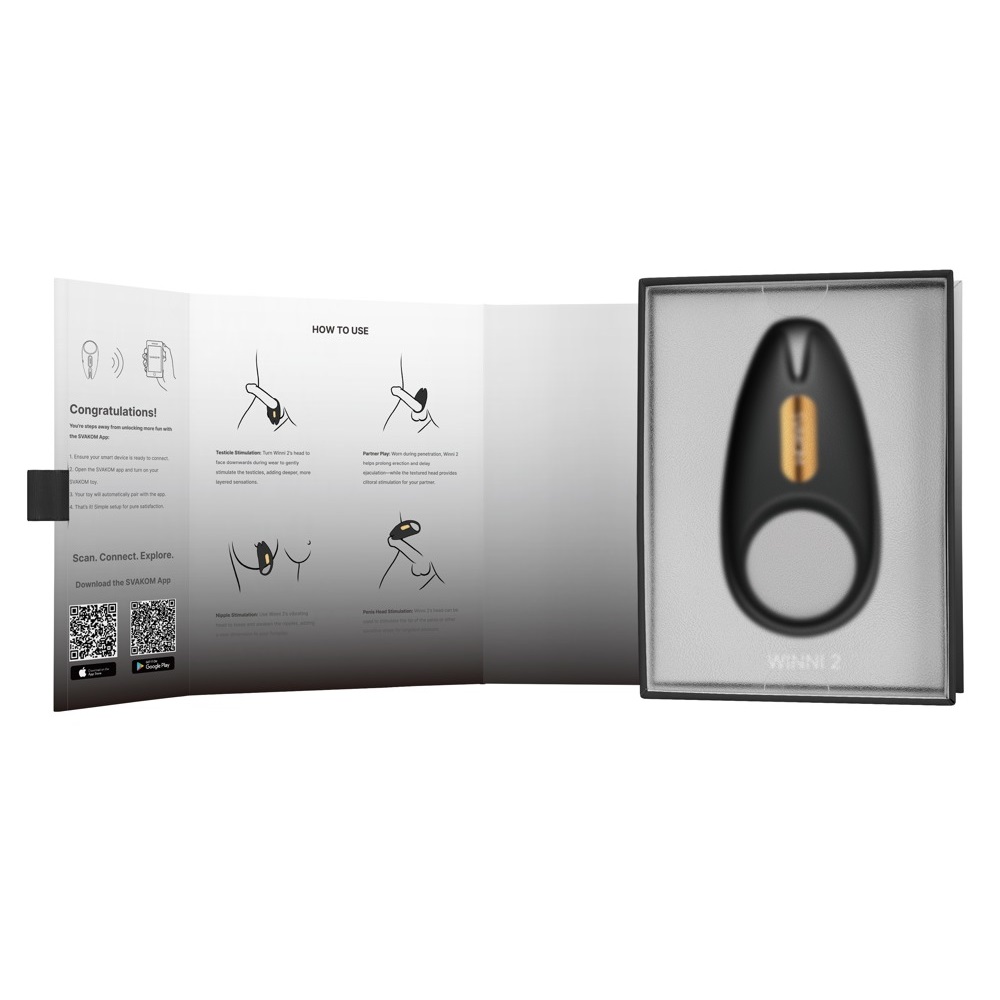 Atsisėskite, įsitaisykite patogiai ir leiskite išmaniajam penio žiedui „Winni 2“ iš „Svakom“ perimti kontrolę. Padidinkite savo ištvermę, sustiprinkite mylimosios stimuliaciją ir mėgaukitės abipuse nauda.